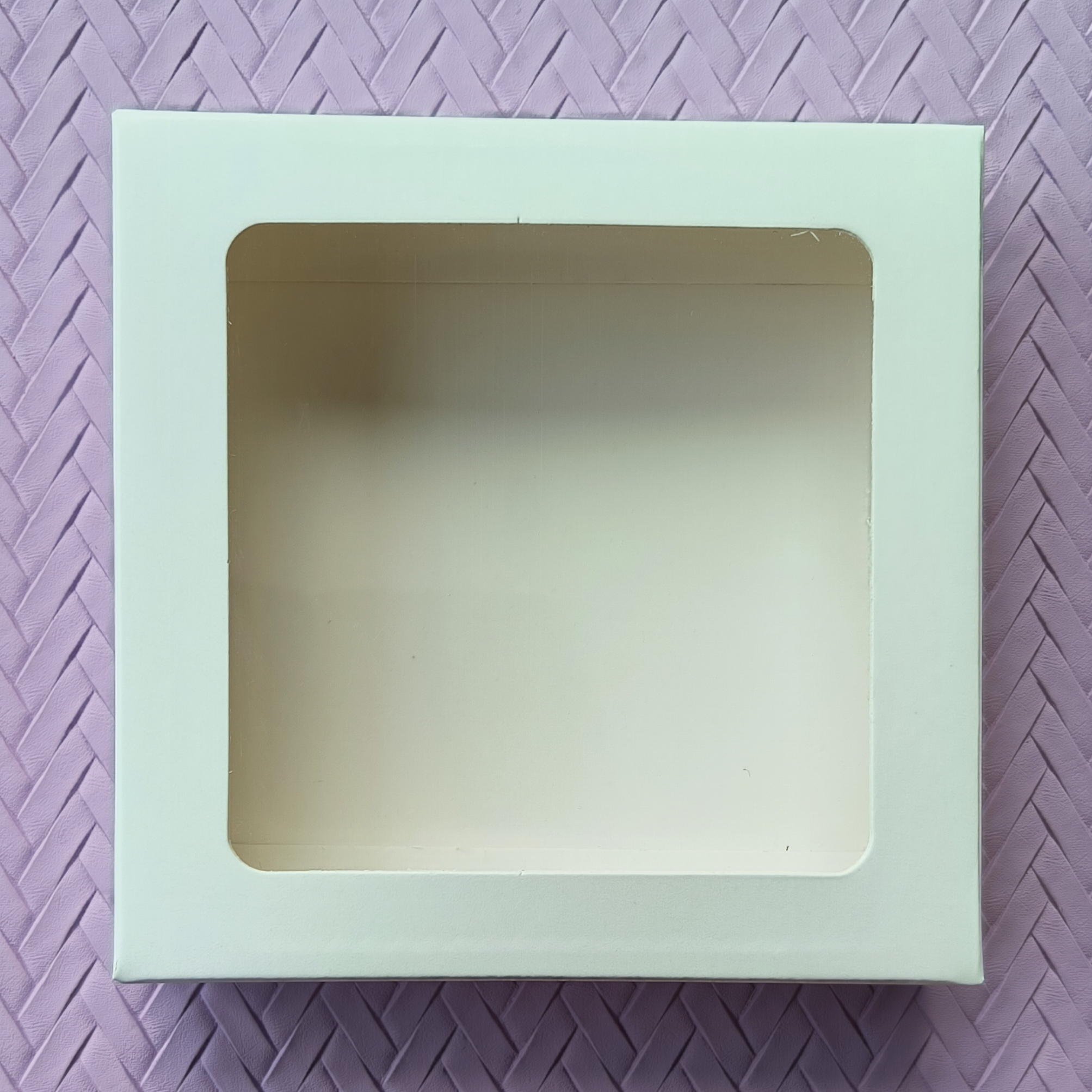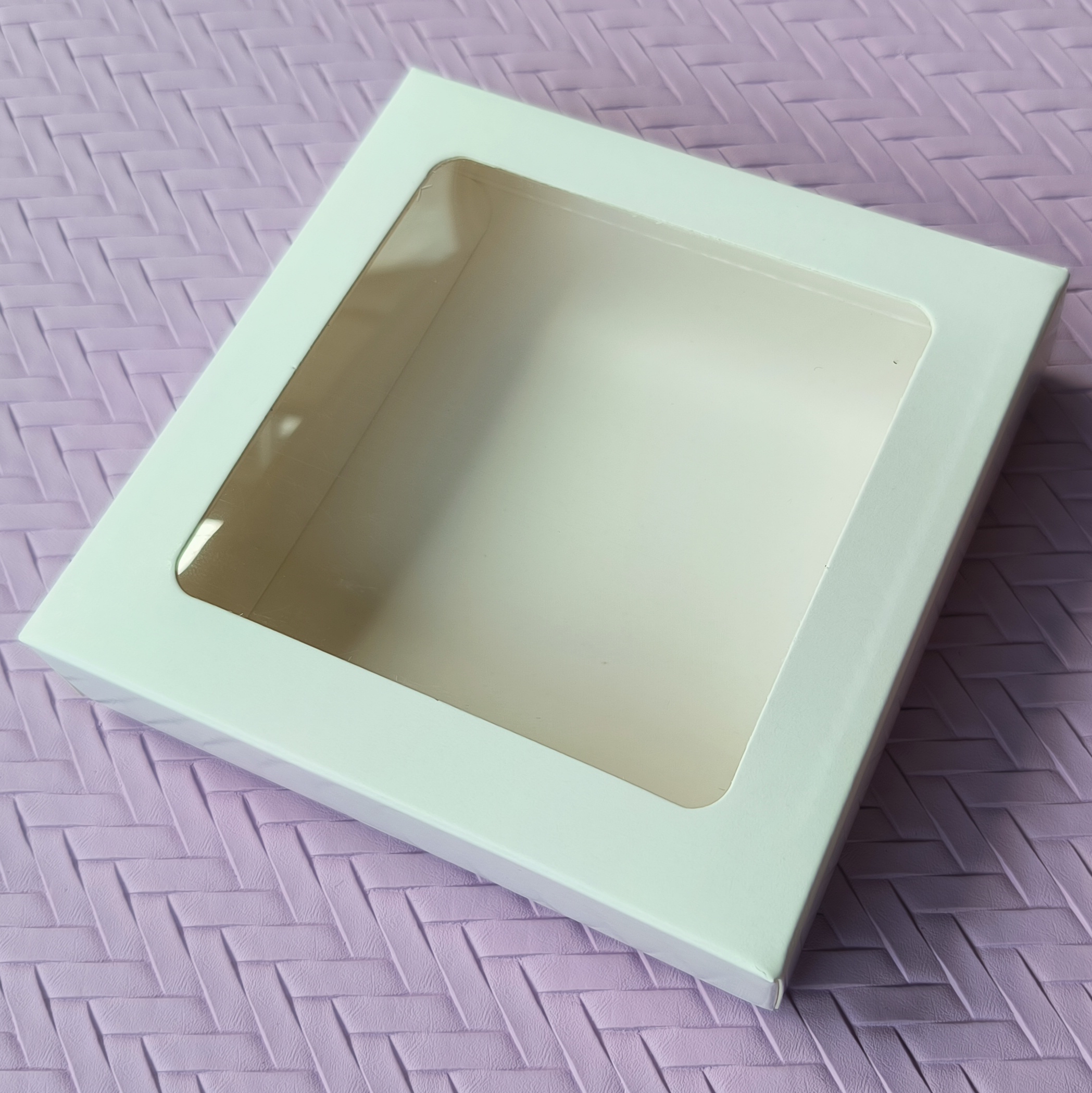 De doosjes zijn van wit karton en hebben een plastic venster aan de voorkant.