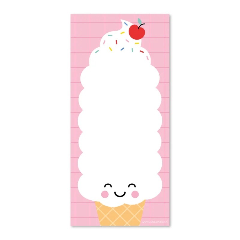 Dit leuke notitieblok met een softijsje met een vrolijk gezichtje erop van het merk Studio Schatkist is heel leuk voor jezelf of om cadeau te geven.