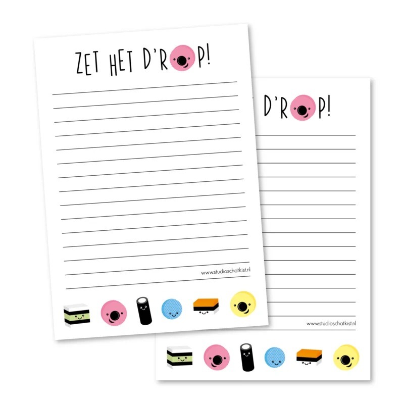 Dit leuke notitieblok met engelse drop met vrolijke gezichtjes erop van het merk Studio Schatkist is heel leuk voor jezelf of om cadeau te geven.